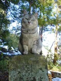 お墓の上でおすぺちゃん