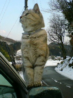 ドアミラーに乗るおすぺちゃん